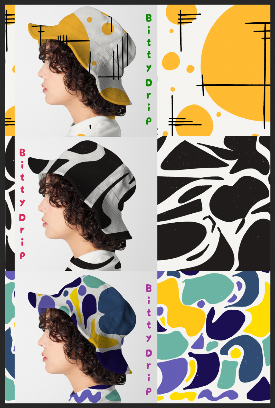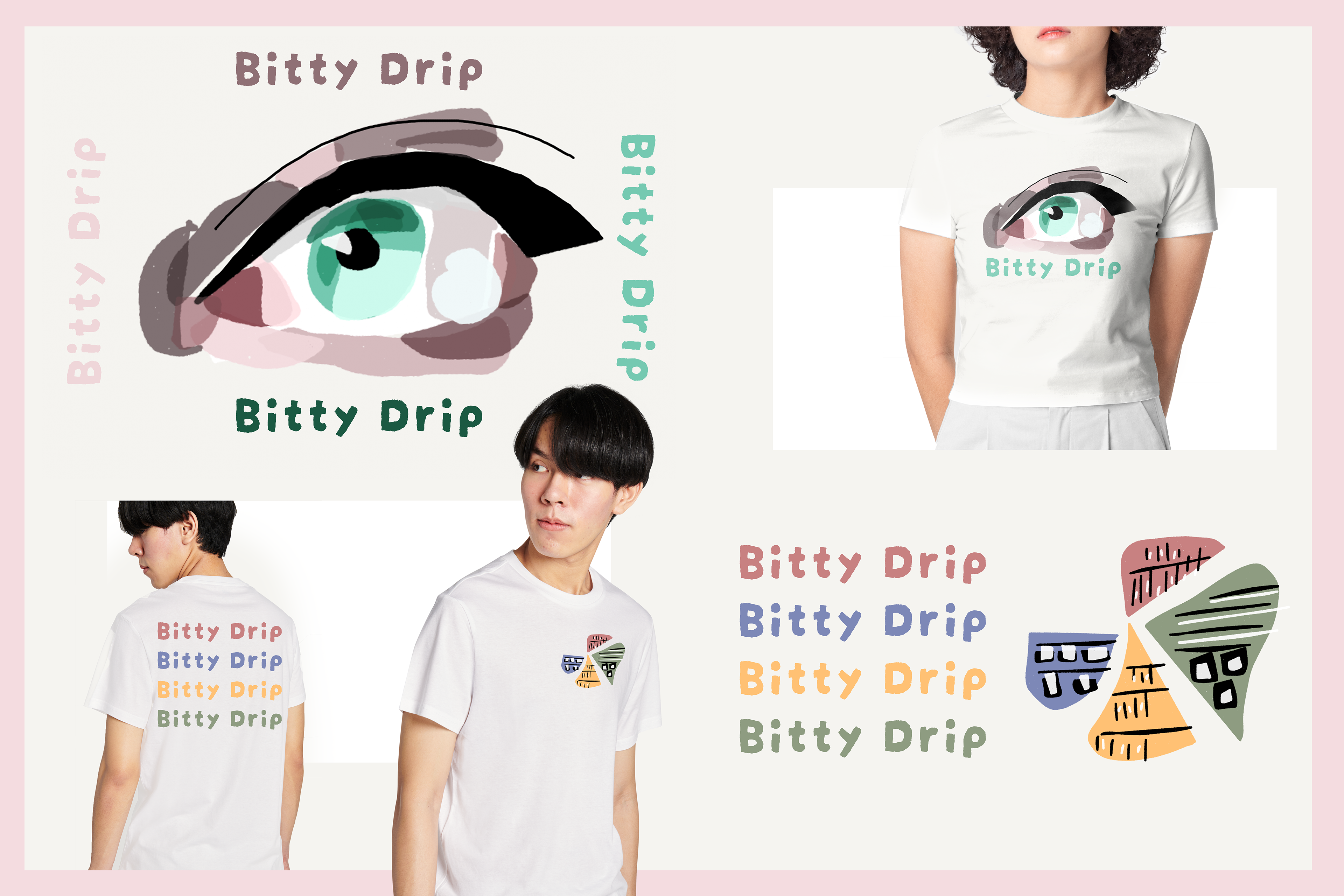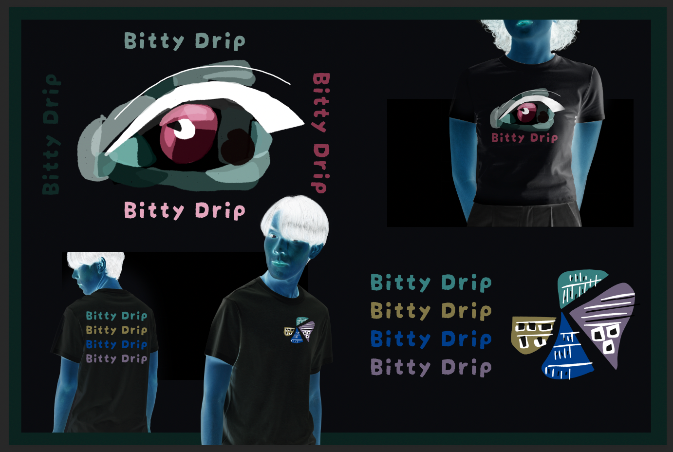 Personal project exploring clothing design and branding using my own artwork.