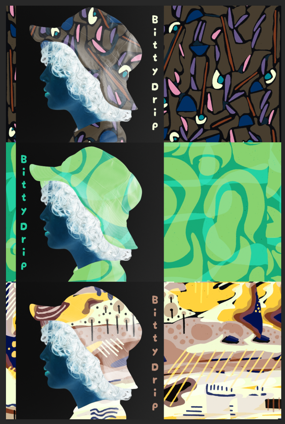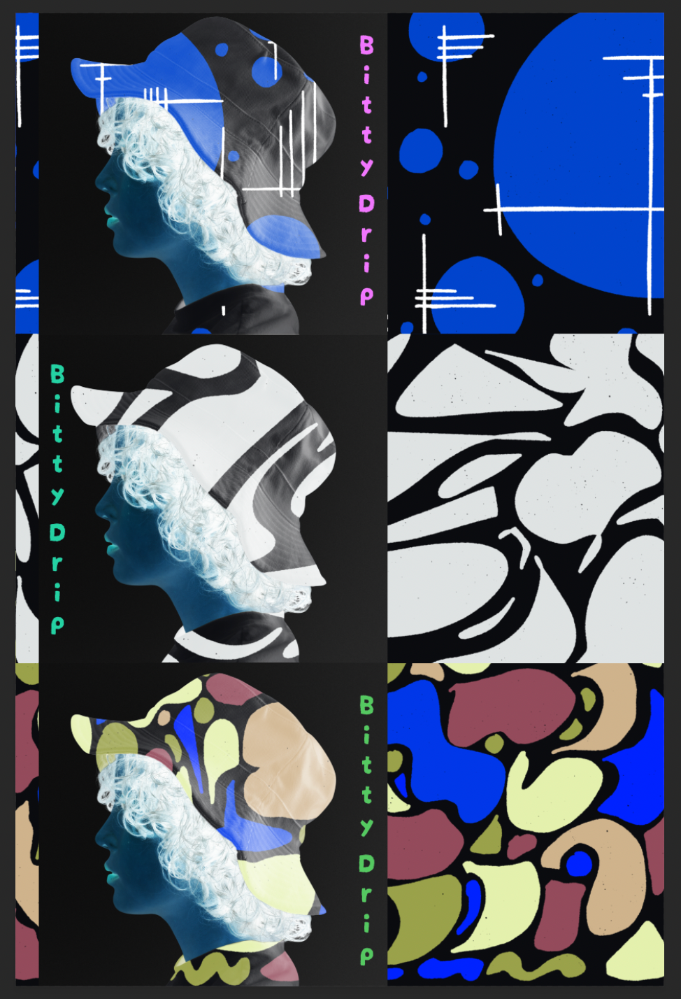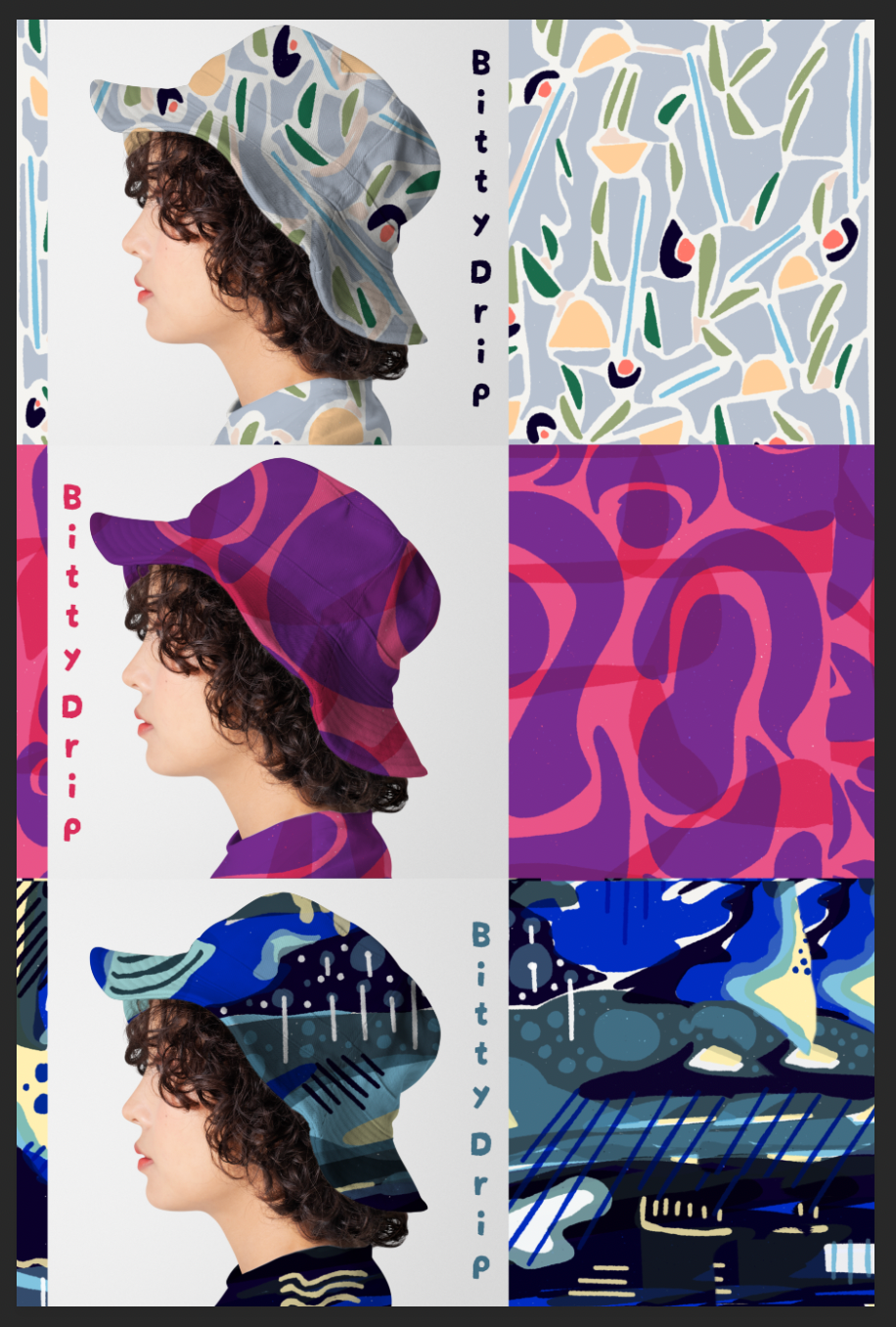 Personal project exploring clothing design and branding using my own artwork.